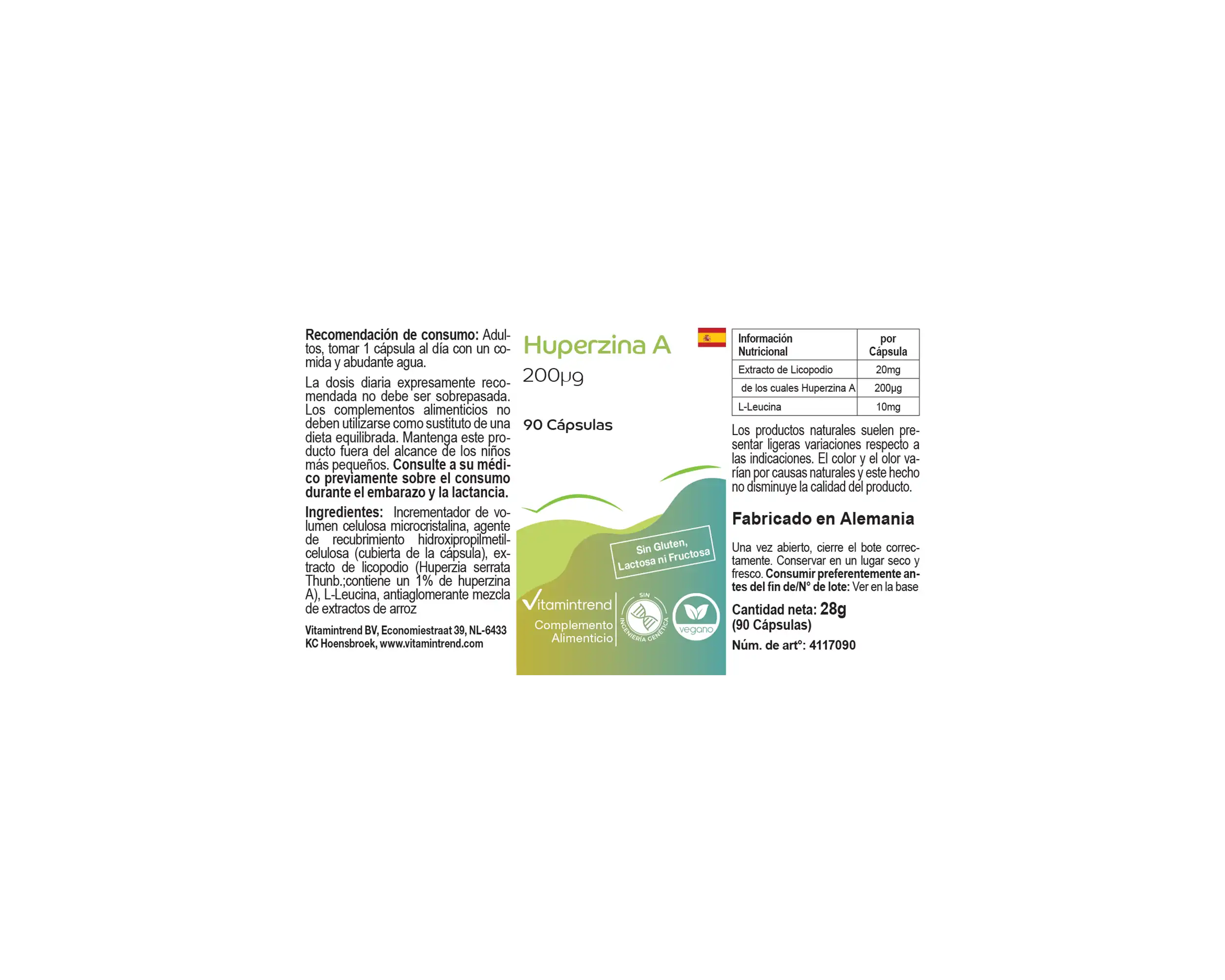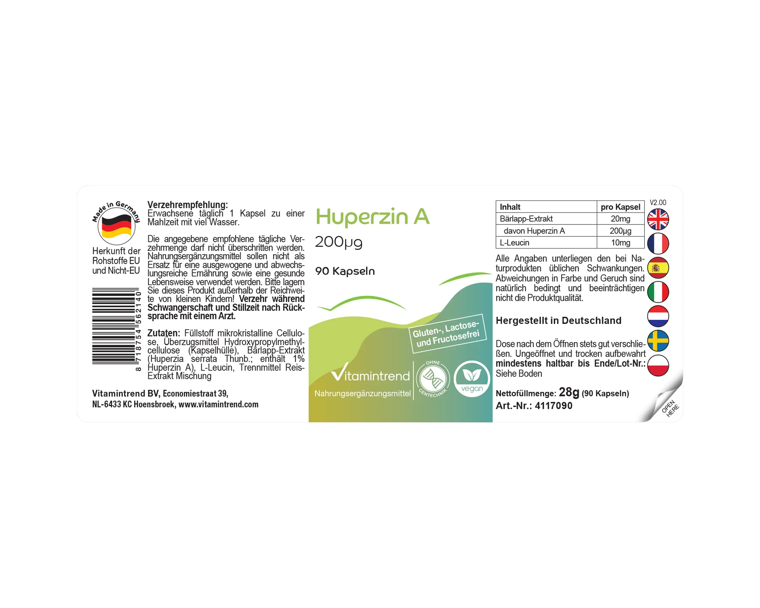 | davon Huperzin A / of which Huperzine A / dont Huperzine A / de los cuales Huperzina A / di cui Uperzina A / waarvan Huperzine A | 200μg |