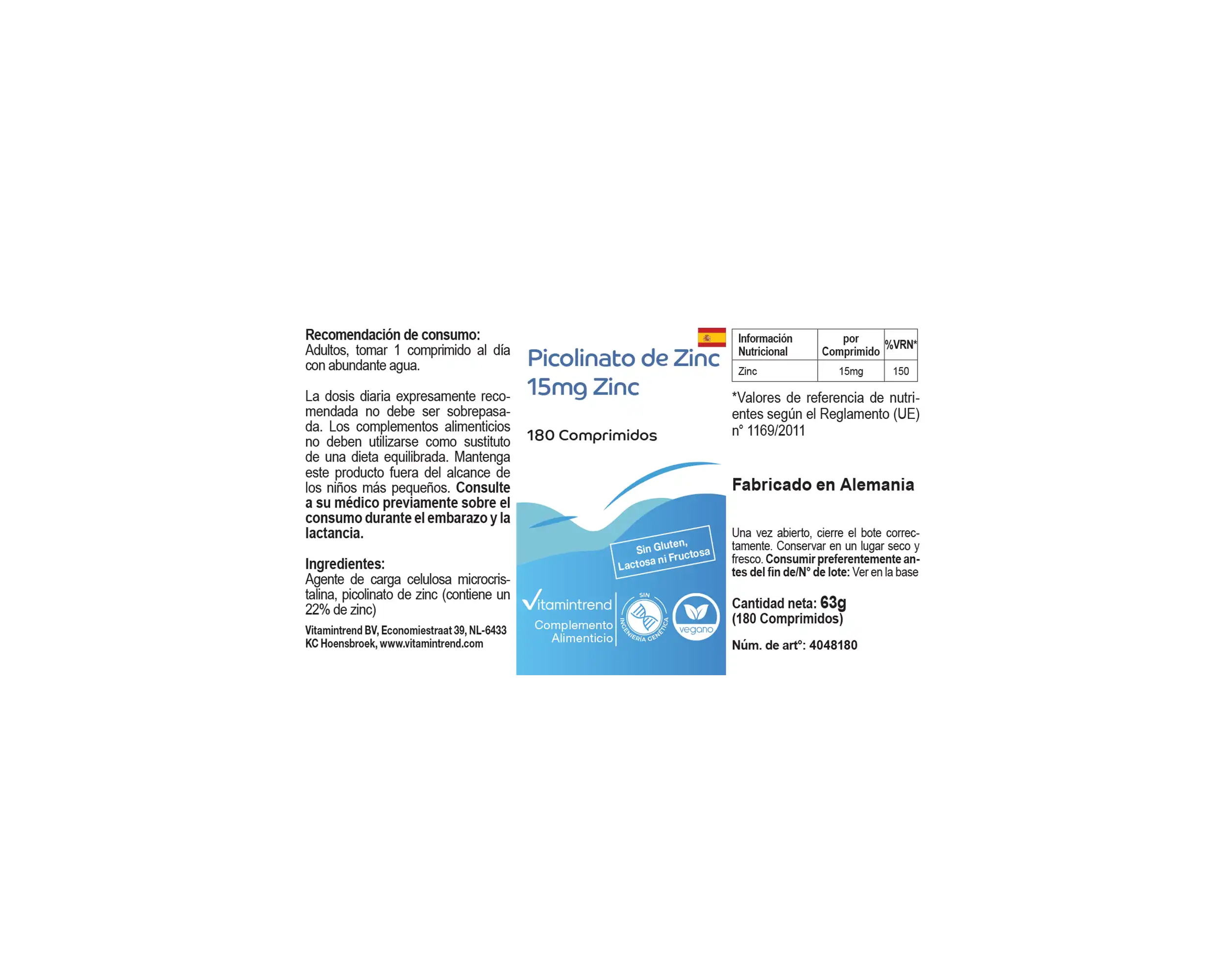 Ingredients: bulking agent microcrystalline cellulose, zinc picolinate (contains 22% zinc).