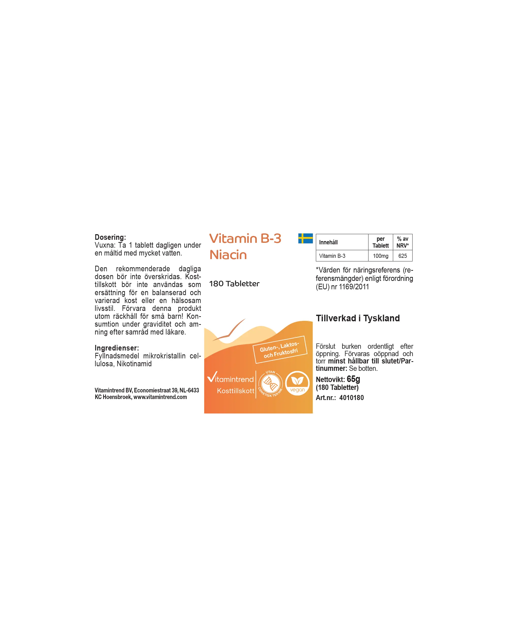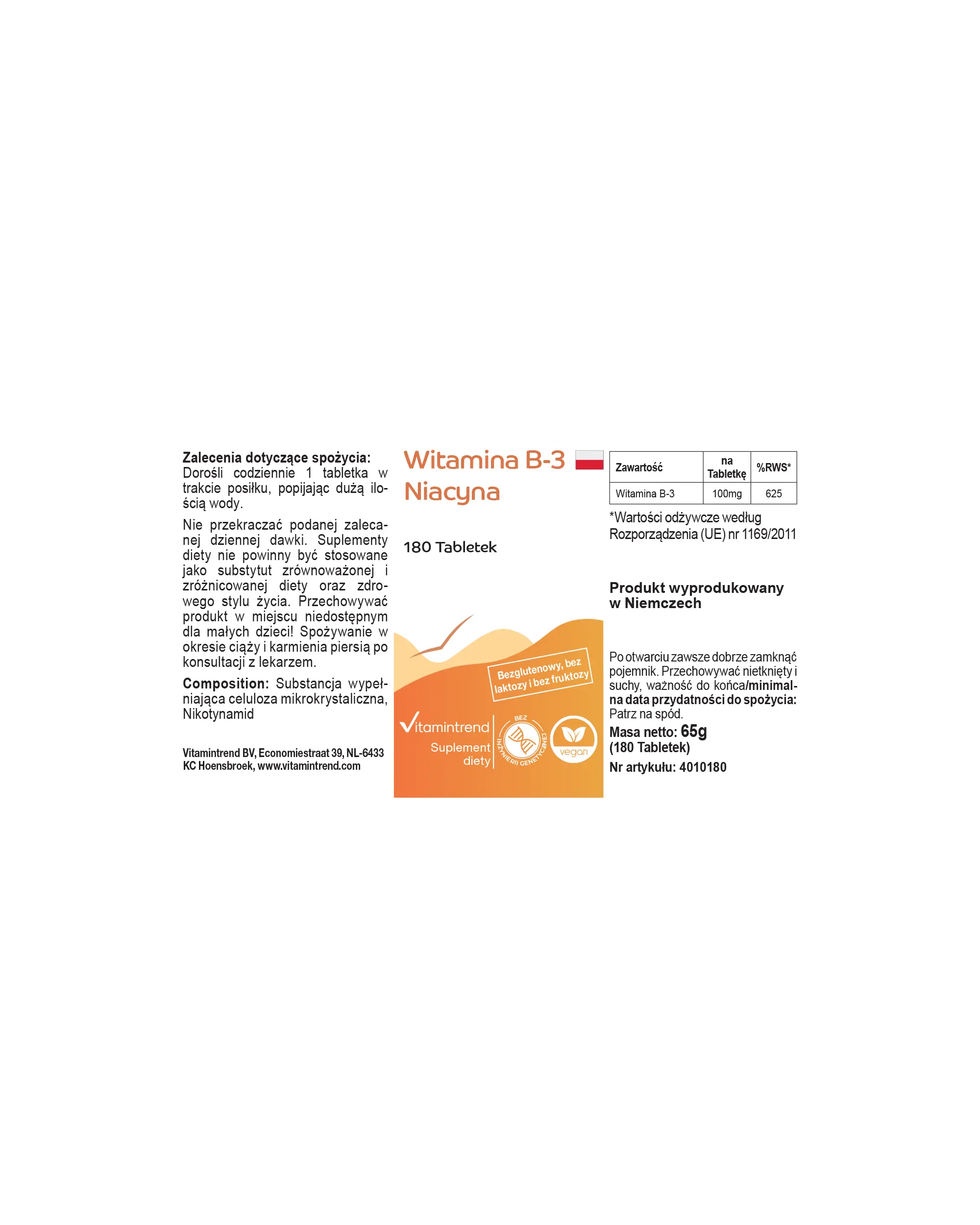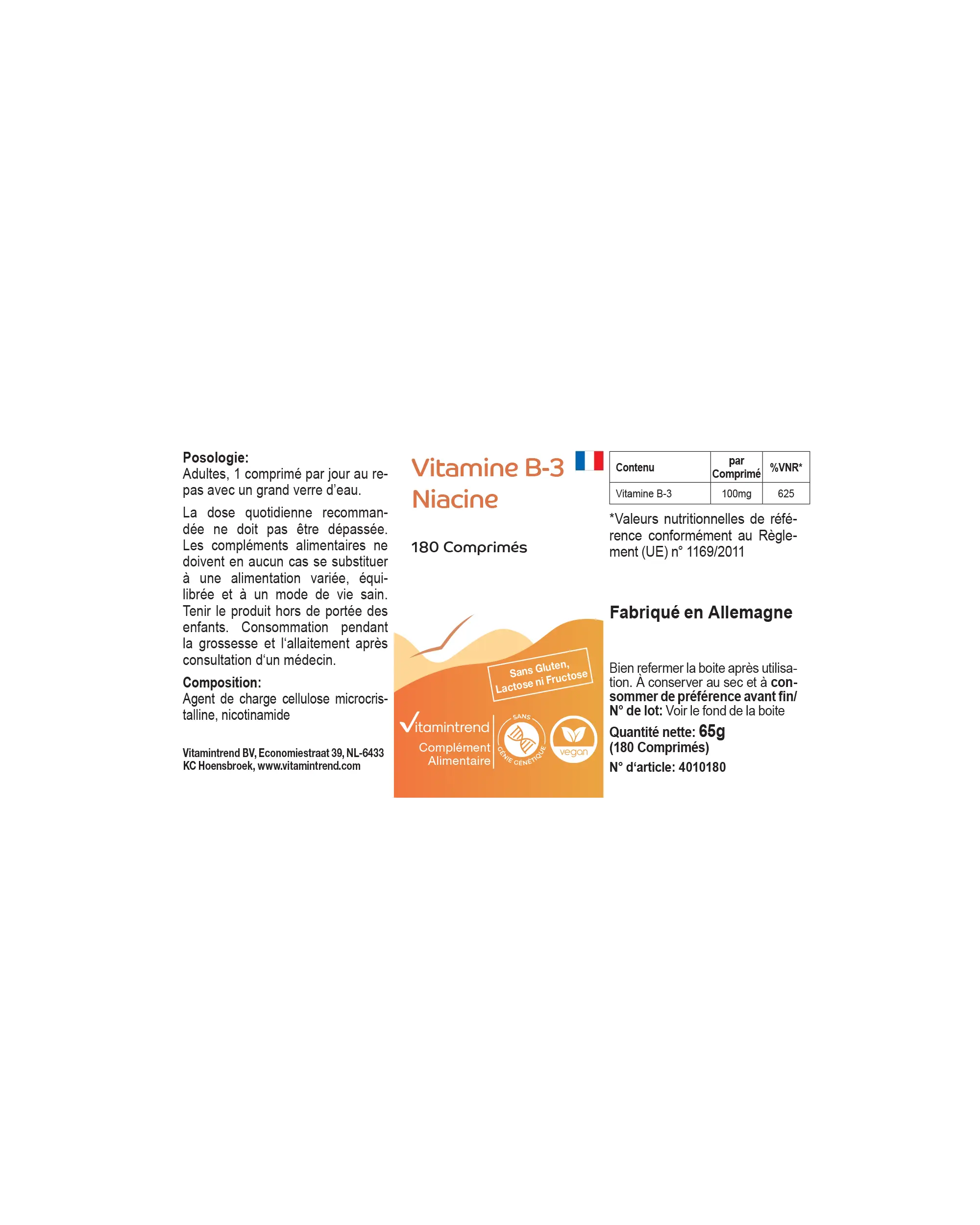 Información sobre el producto "Niacina 100mg Vitamina B3 - 180 comprimidos"