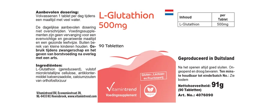Informazioni sul prodotto "L-Glutatione 500mg 90 compresse, vegan, alto dosaggio, forma ridotta, per 3 mesi"