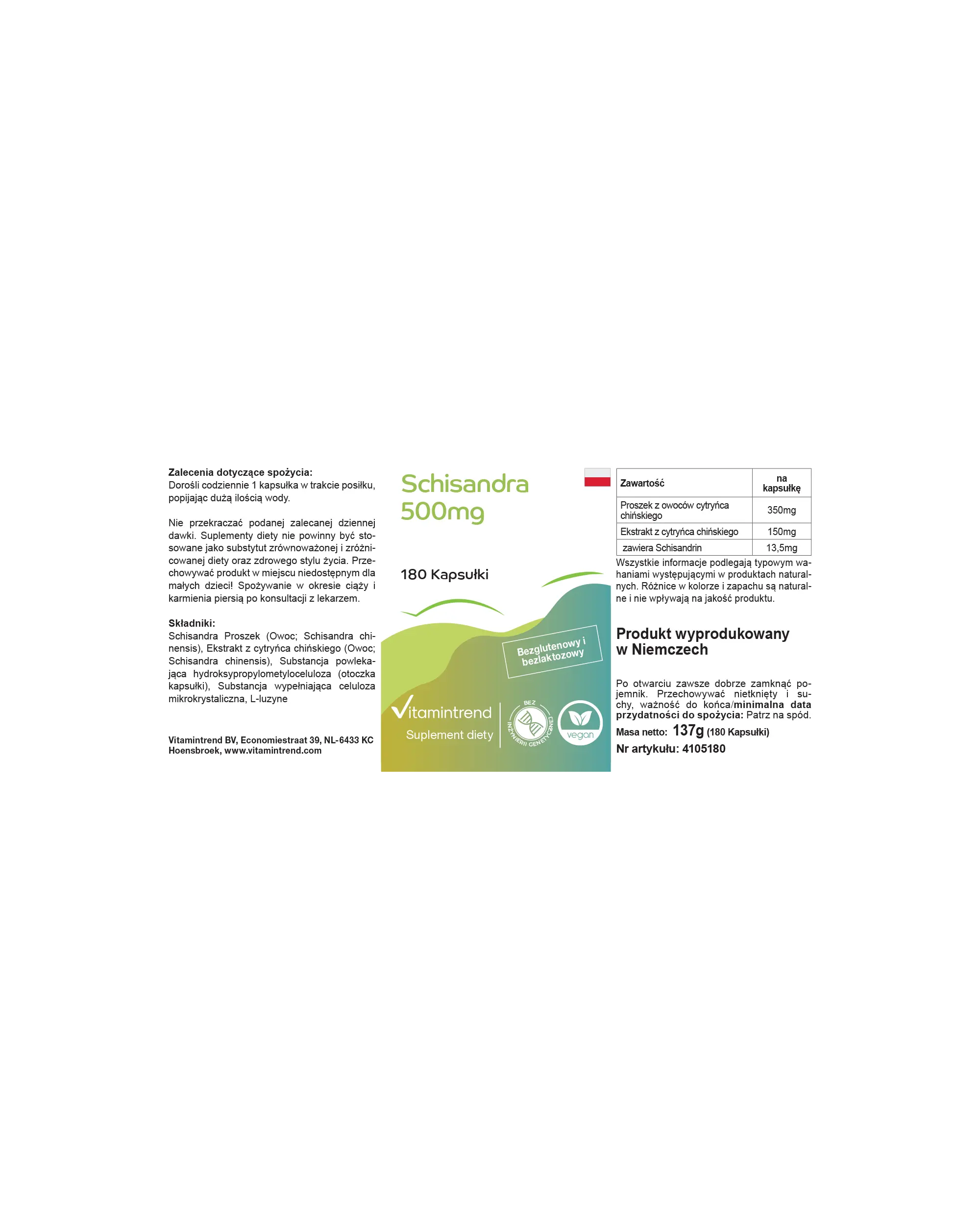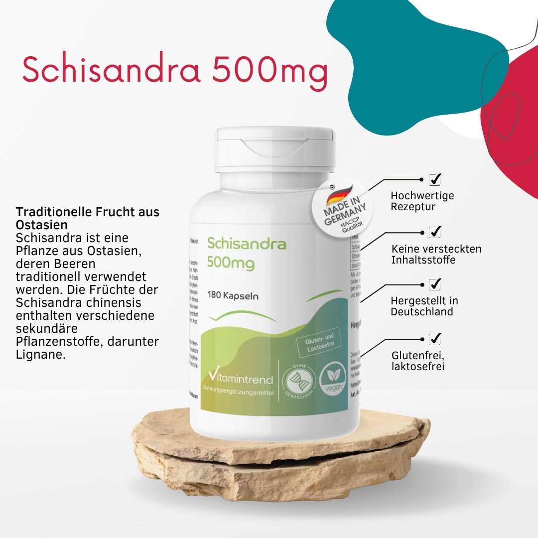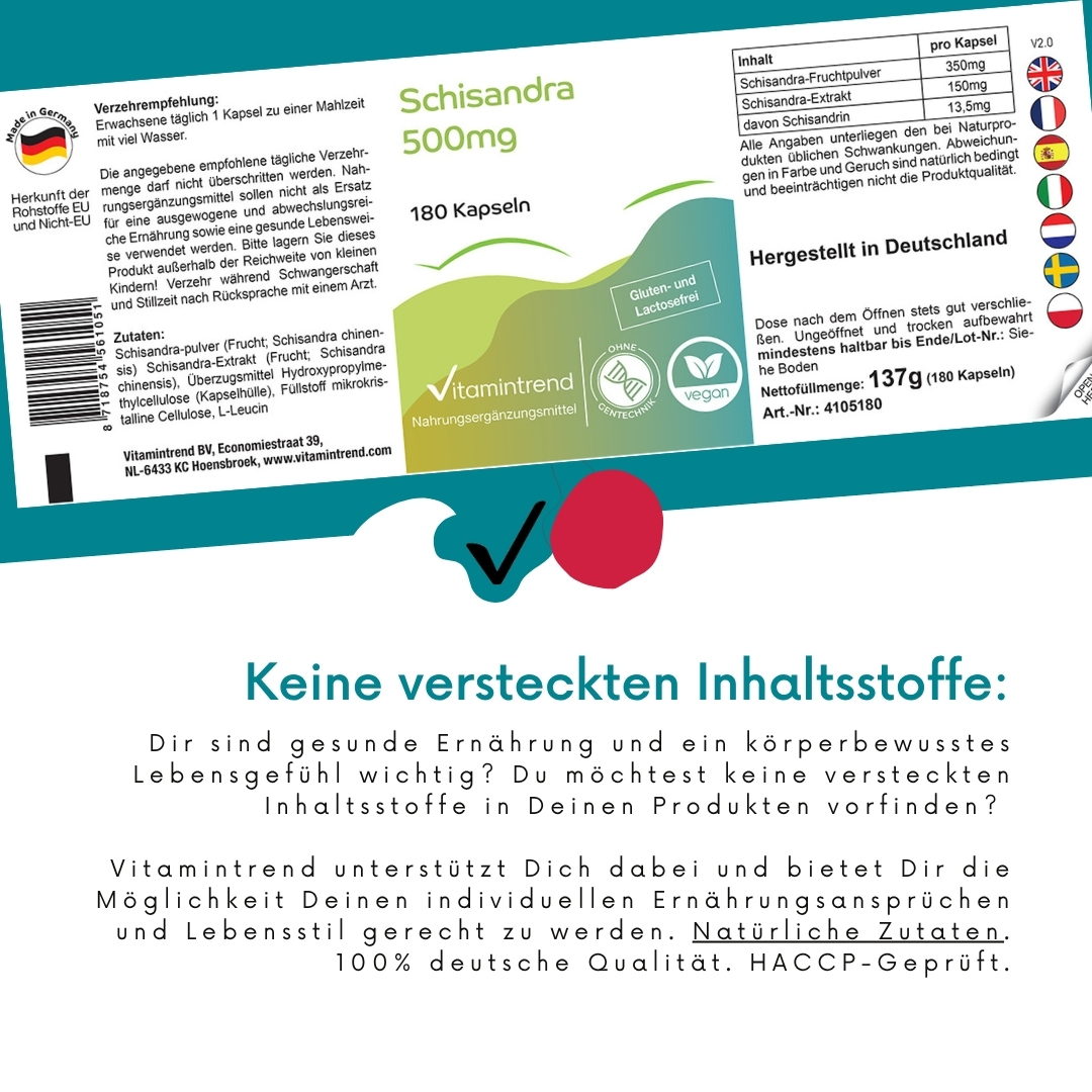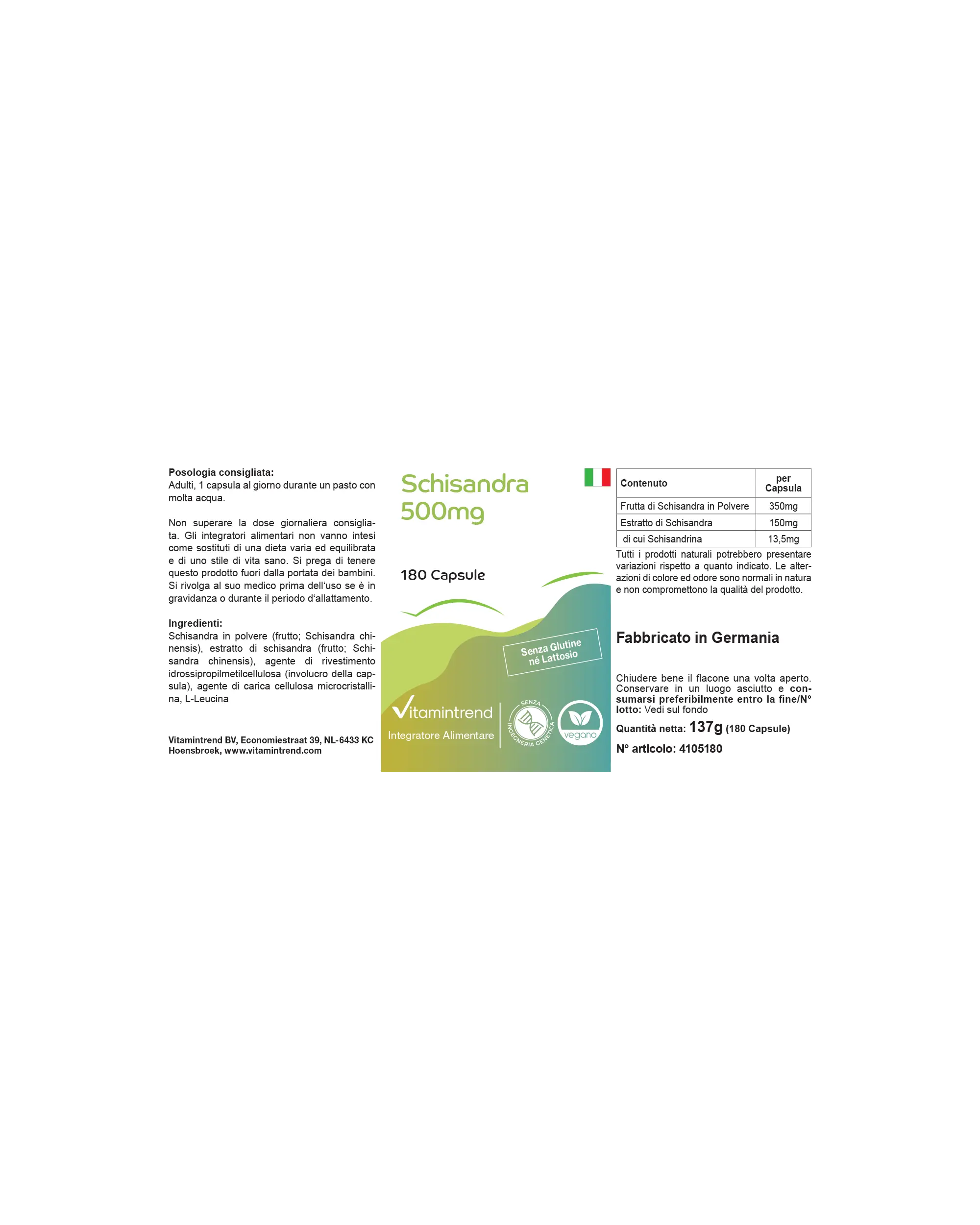 Informazioni sul prodotto "Schisandra 500 mg - 180 capsule - Confezione multipla per 6 mesi - Vegana | Vitamintrend"