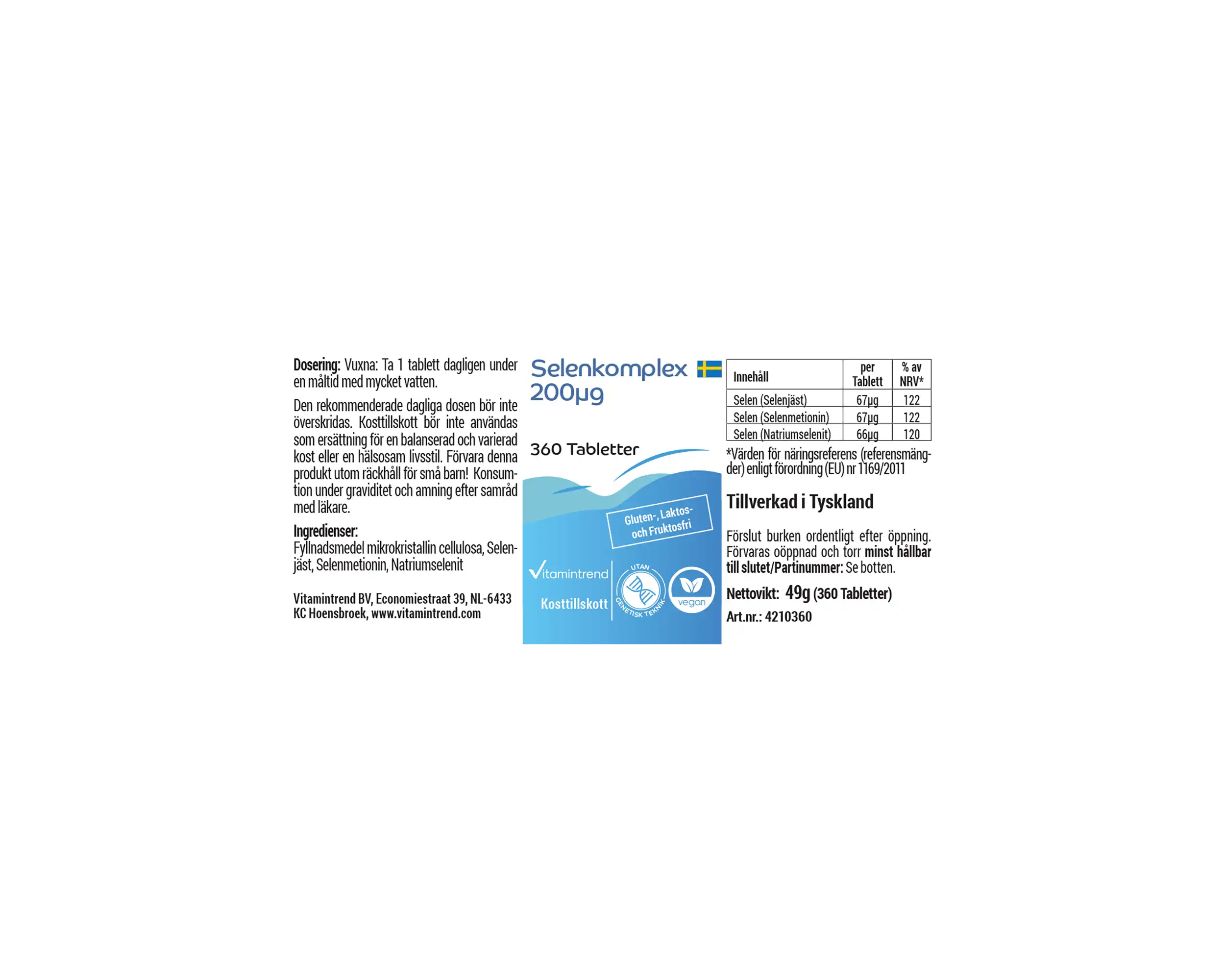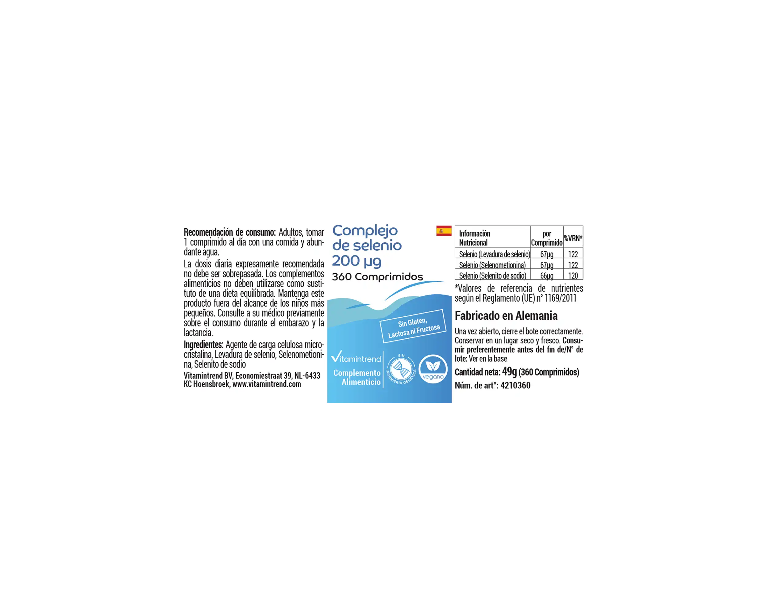 Informazioni sul prodotto "Selenio Complesso 200 µg – 3 Forme di Selenio – 360 Compresse | Vitamintrend"